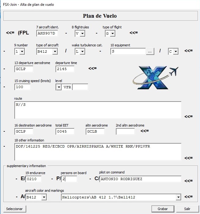 Aquí te envío una captura del plan de vuelo, a ver si va a resultar que estoy metiendo la pata en algo y voy a tener que repetir el curso de VFR jeje