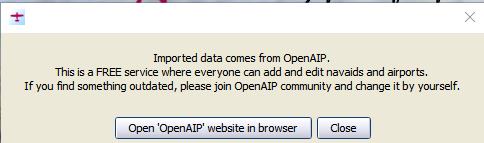 04) Nos aparece otro mensaje que nos invita a abrir la página de OpenAIP; decimos "Open OpenAIP website in browser"