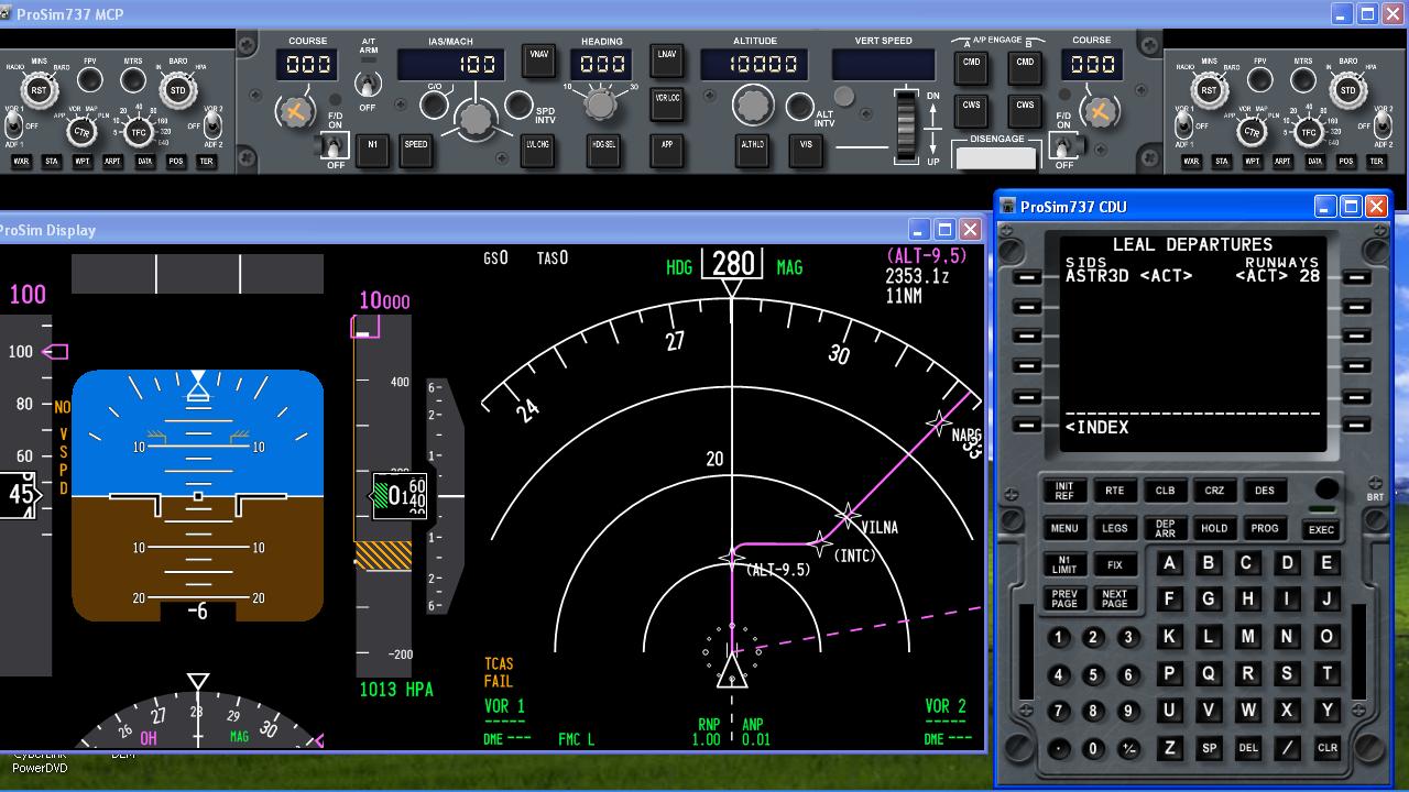 FSX y diverso material de Opencockpit (dos EFIS, MCP, overhead casero, etc etc.). Thtrotle autoconstruido ....