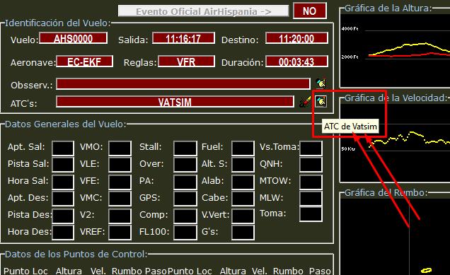 Al valorar el vuelo podemos utilizar la opción de AHS Bender "ATC de VATSIM":