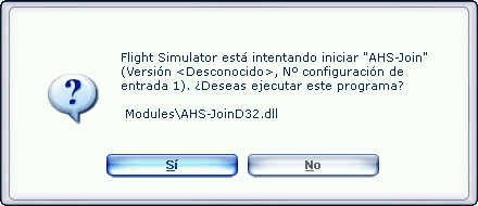 Por supuesto, le digo que sí y el simulador arranca normalmente, pero no me aparece nada relativo al AHS-Join, ninguna ventana, ninguna opción etc ...