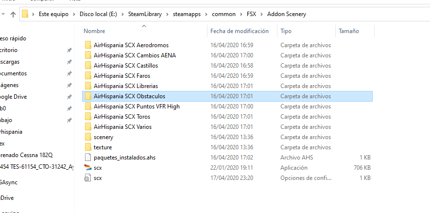 En la biblioteca de escenario del FSX hay que dar de alta cada una de las carpetas que se crean de manera individual en el AddOn Scenery (Aerodromos, AENA, Castillos,...)???