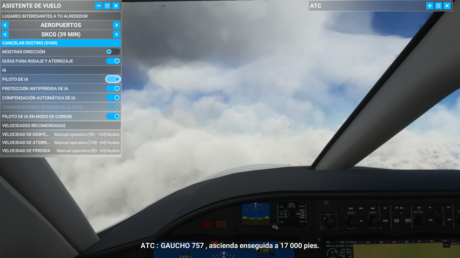 Tengo el siguiente problema. Cuando vuelo con el Plan de vuelo del Fs2020, despego manualmente y una vez gear up y retraer flaps, activo el "Piloto IA", pues no respeta la altitud, siempre queda 600 pies por debajo. No es un problema de la presión barométrica ni de la altitud asignada. Les pego una imagen, la altura debe de ser 17000 y está por debajo, le quito el Piloto IA, asciendo a 17.000 pies, conecto el piloto IA y baja 600 pies y est{a constantemente solicitando que ascienda a la altura asignada, sea cual fuera siempre queda 600 pies por debajo.