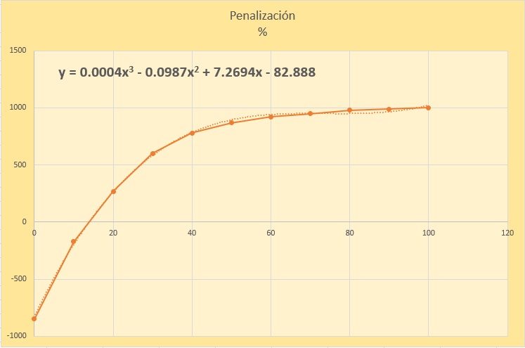 Eje Y: Muestra la puntuación asignada, que puede ir desde +1000 puntos (penalización) hasta -800 puntos (bonificación).