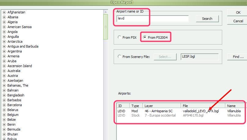 Otra cosa: en el AFX no hace falta importar un bgl: puedes buscar por el ICAO y te saldrán todos los que encuentre.