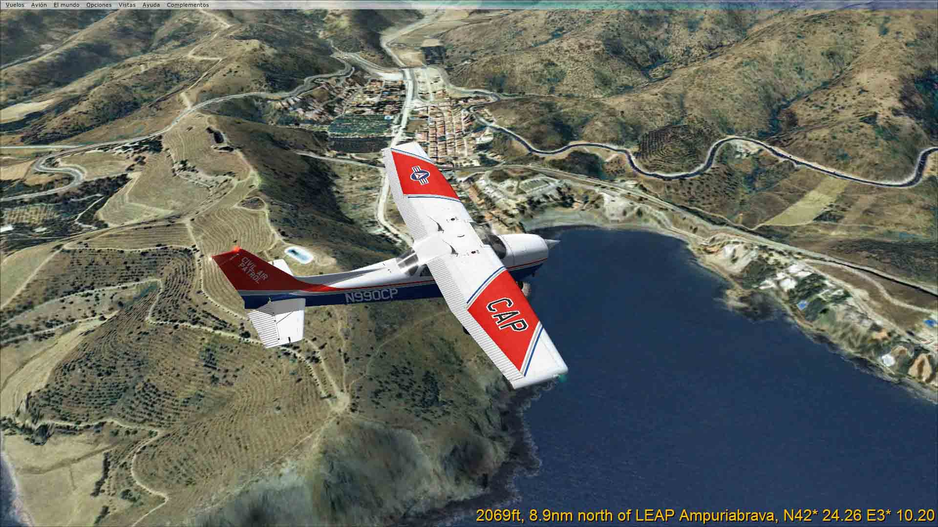 En este momento tenia ya desconectado el simulador , pero te adjunto una toma hecha a la altura de Colera un poco más al norte de Cala Montjoy donde antes la pequeña ensenada estaba totalmente cubierta de tierra. Ahora ha desaparecido totalmente y así en toda la costa