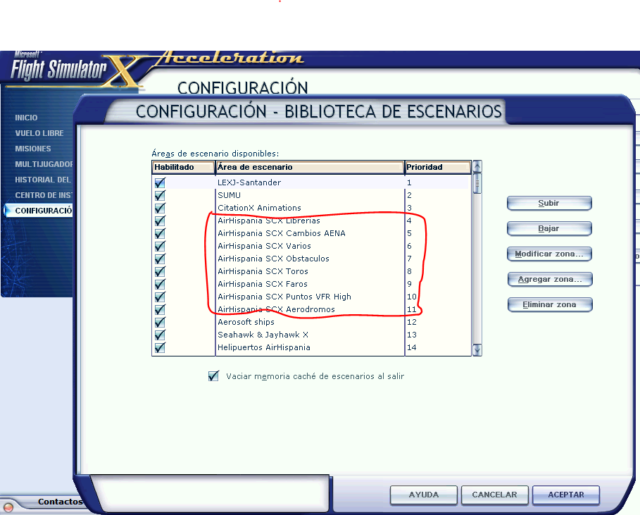 (4) Respecto de escenarios. Tengo instalado todo lo que publicó FSGenesis para FSX (Mallas). Y encima de estas tengo instalado el FTXGlobal. La verdad estoy satisfecho con estos. Pero veo que aquí en AHS tenemos bastante disponible respecto de escenarios de España. Me podrían recomendar cuales escenarios (los de AirHispania SCX u otros?) y en qué orden instalarlos considerando lo que ya tengo?. De momento la prioridad serian los que me ayuden mejor a pasar la fase de certificación y entrenamiento VFR de AHS.