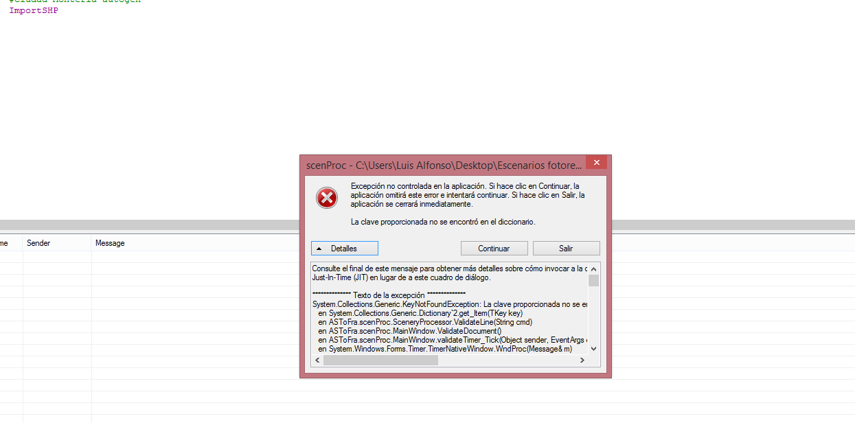 Hola, hasta ahora me intereso por crear Autogen para el fsx, hice un escenario fotorealista de mi ciudad y se me desaparecieron los modelos 3d de casas y arboles, buscando encontré esta herramienta pero son escasos los tutoriales, con respecto a ScenProc no he podido usar el comando "ImportSHP" no me sale como debería -Subo imagen de lo que me sale- Y eso me ha impedido continuar, hice la instalación de los prerequisitos Microsoft .NET Framework version 2.0, Microsoft .NET Framework version 3.5 y Microsoft Access Database Engine 2010. Uso windows 8.1 quizá el problema pueda ir por ahí. Si saben de alguna herramienta más actual con la pueda hacerlo les agradezco.