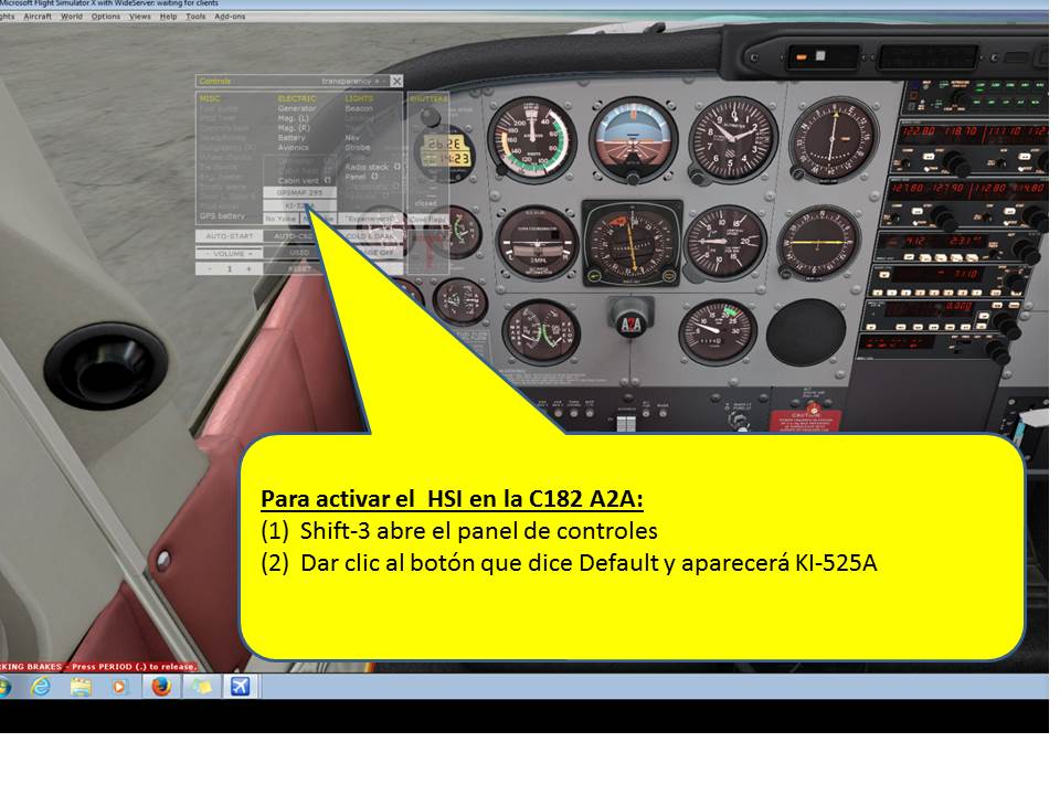 Al que le interese y no este enterado, el indicador del HSI puede habilitarse abriendo el panel de control estando en la cabina del avión <SHIFT 3> y haciéndole clic al botón que dice "Defalult" y aparecerá HI-525A
