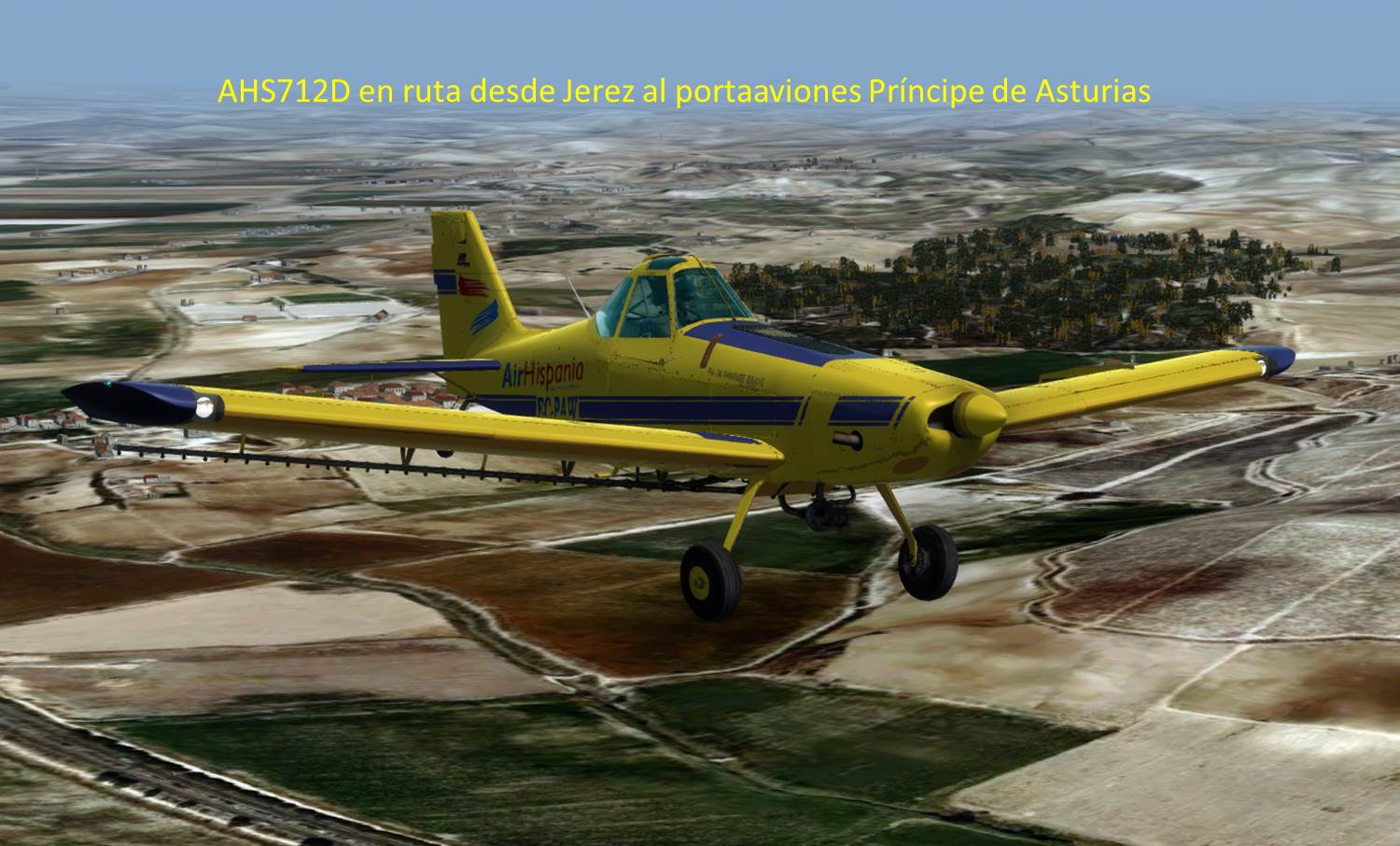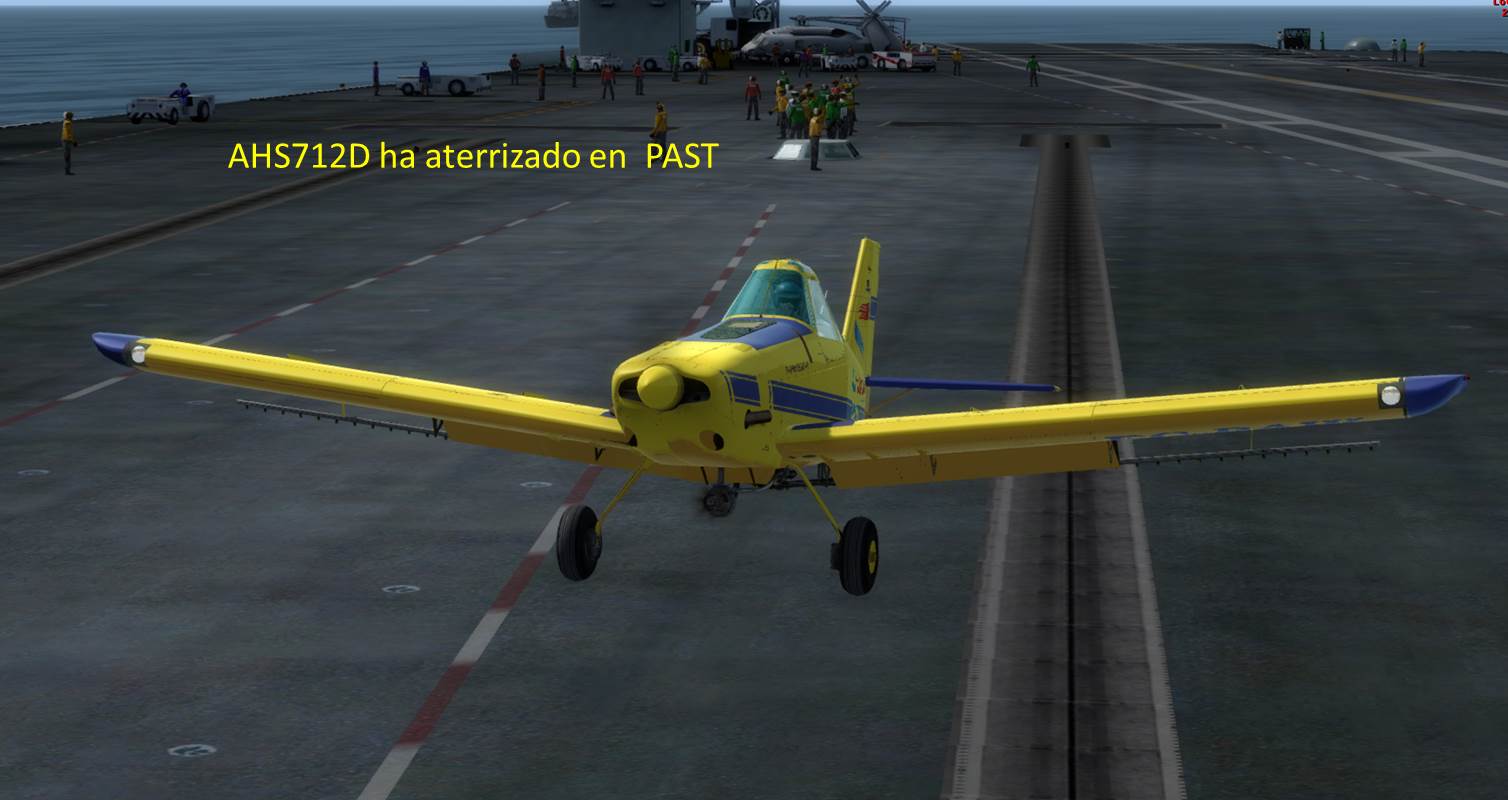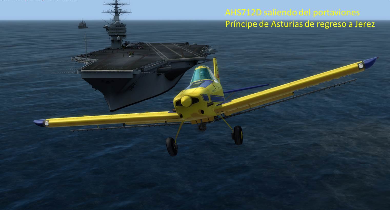 AHS712D probando llevar la Piper PA36 Pawnee EC-PAW desde Jerez al Portaaviones Príncipe de Asturias.