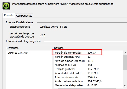 Para información, aquí tienes la versión de driver que tengo yo: