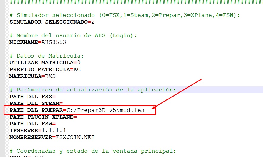 1) Editar el AHS-Join.ini y poner el path del Prepar3d v5: