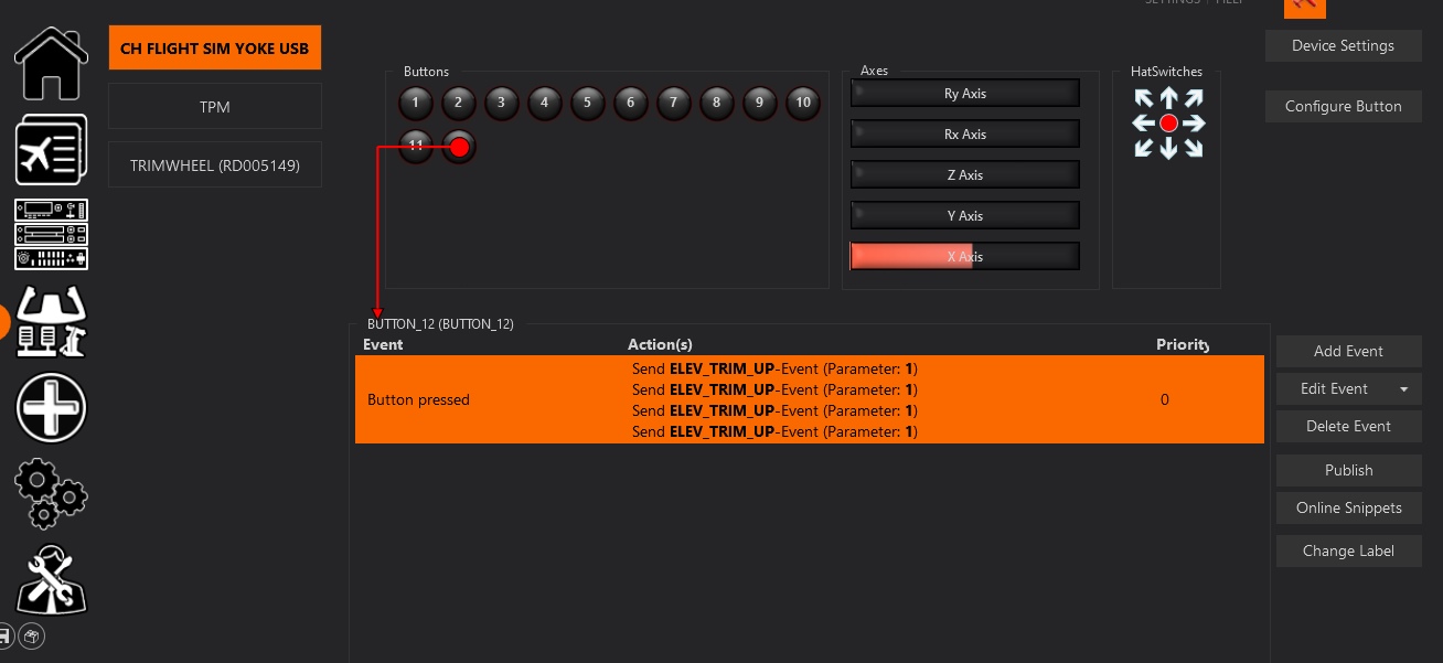 El comportamiento del trim mediante los botones del yoke no es correcto: