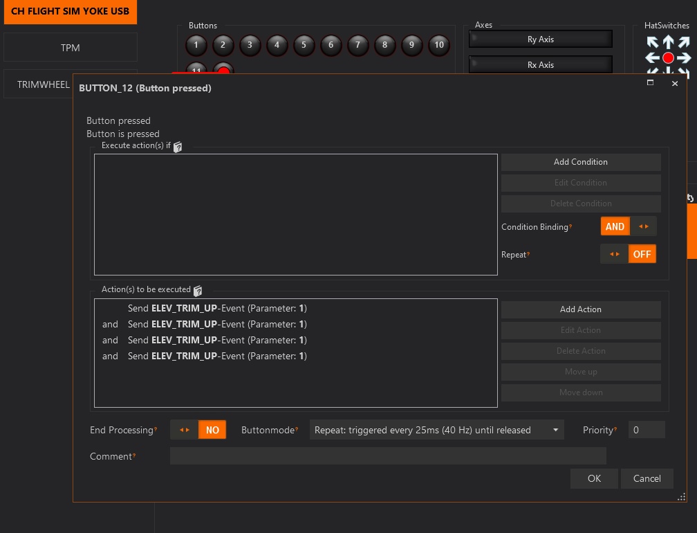 Comportamiento del trim mediante botones