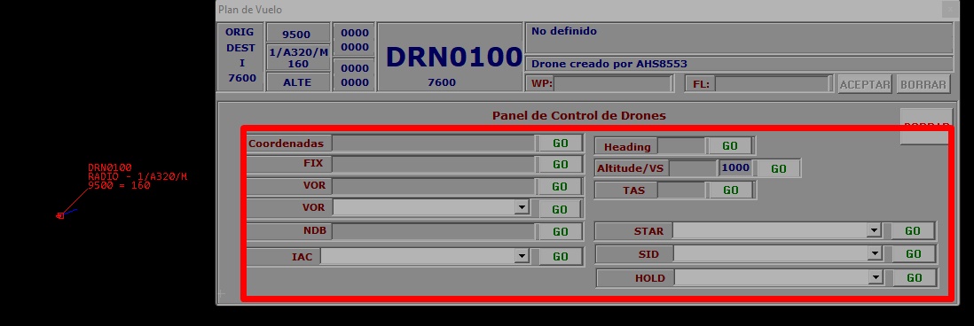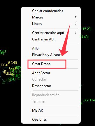 Se accede haciendo click derecho sobre la pantalla de radar, en el punto donde queramos crear el drone: