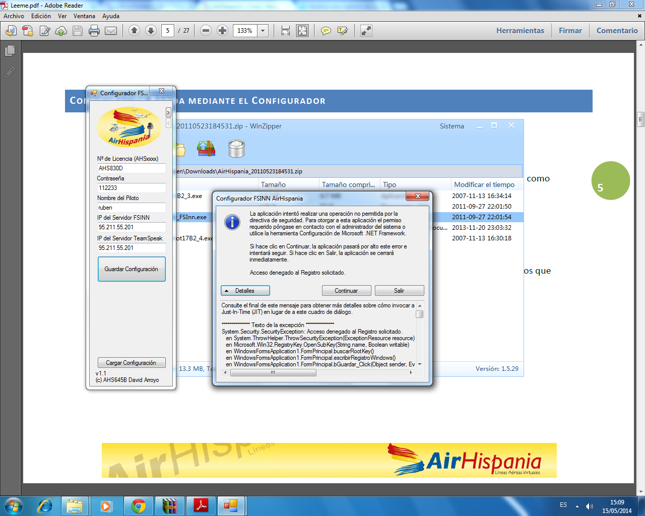 hola, necesito ayuda con la instalacion de FSINN, la instalacion me sale bien pero cuando voy a configurarlo meto mis datos y me dice operacion no permitida, aqui les adjunto una captura, aver si alguien puede ayudarme, gracias un saludo.