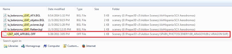He encontrado que en mi instalación, hay otro LE47 que viene con el paquete de los escenarios ortofotográficos de 1m (representa el AD de Torremocha del Jiloca ULM) que pone en conflicto el aeródromo LE47 (La Balanzona) del paquete SCX de Air Hispania.